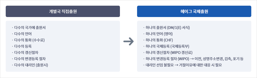 개별국 직접출원과 헤이그시스템에 의한 출원의 비교