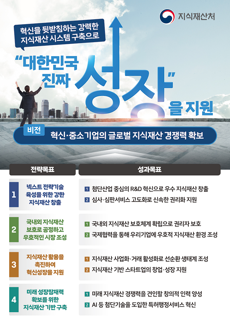 임무 : 혁신을 뒷받침하는 강력한 지식재산 시스템 구축으로 대한민국 진짜 성장을 지원